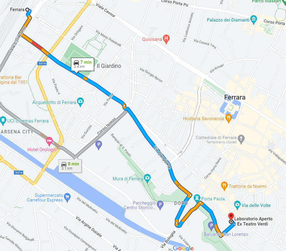 A piedi dalla stazione FS di Ferrara si impiega circa 30 minuti.